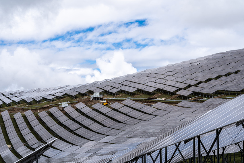 距兩河口水電站約50公里的柯拉一期光伏電站,200多萬(wàn)塊光伏板將最高海拔4600米的扎拉托桑山裝點(diǎn)成一片“光伏海”。