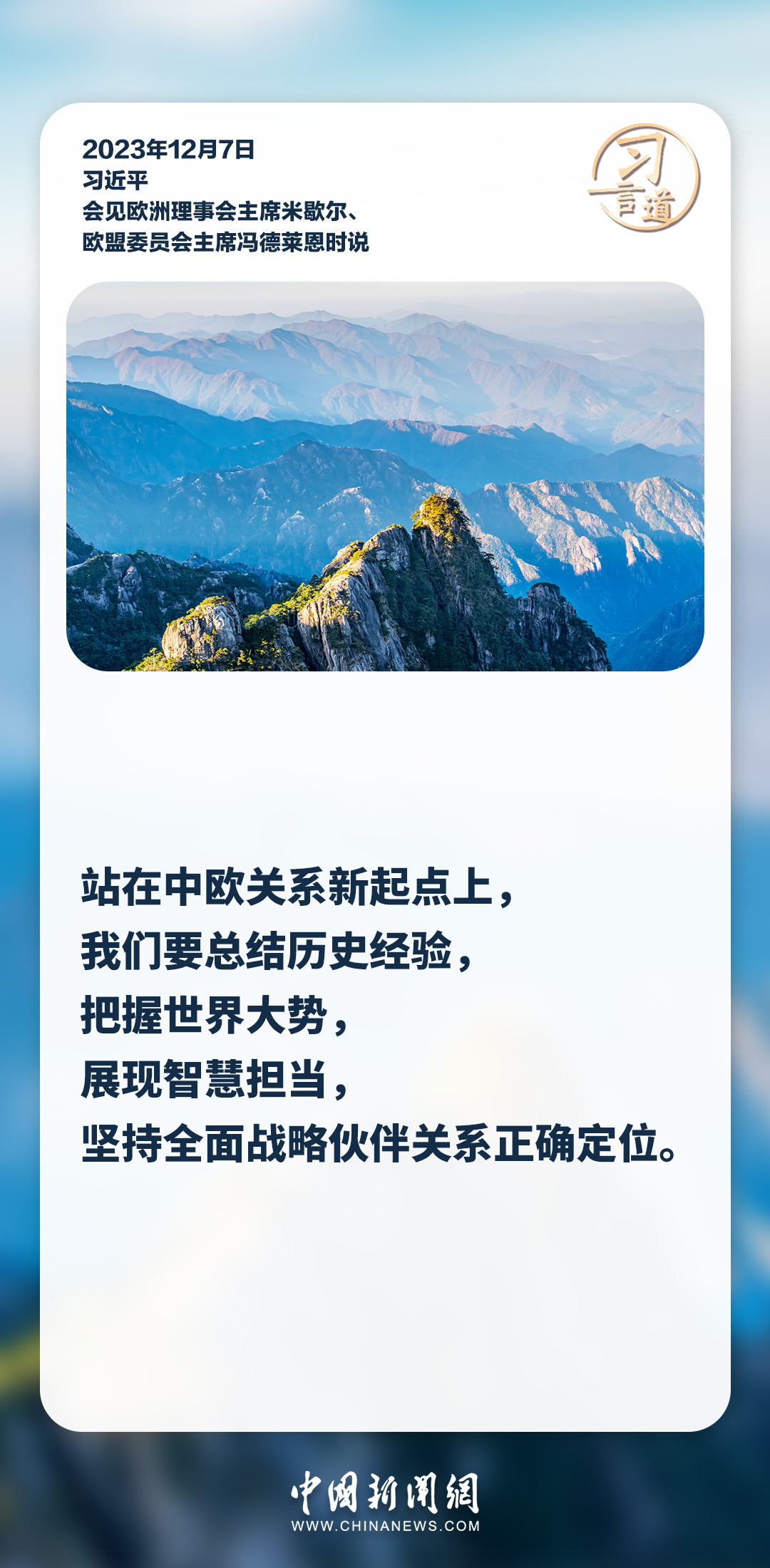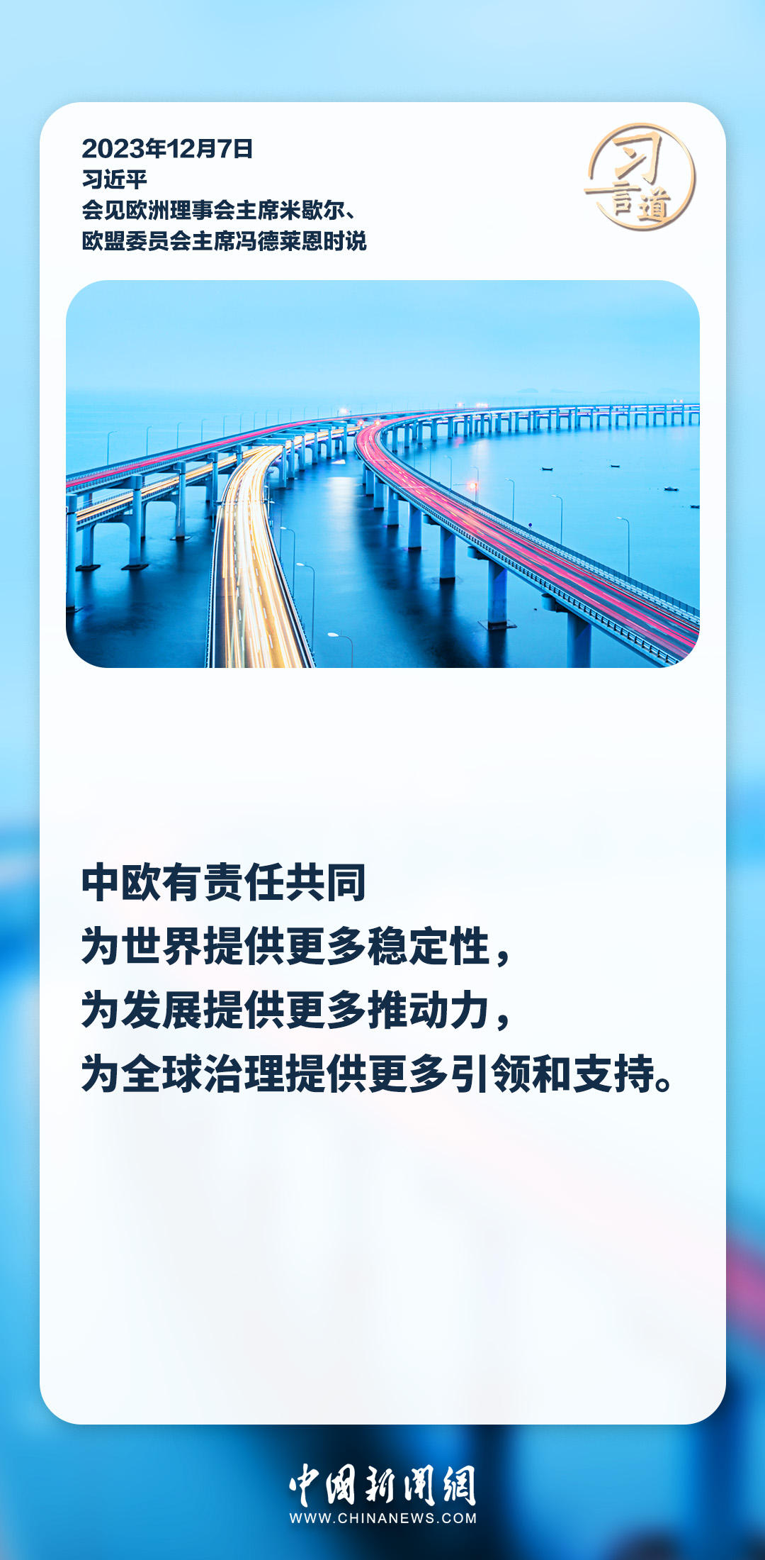 12月7日,國(guó)家主席習(xí)近平在釣魚臺(tái)國(guó)賓館會(huì)見來華舉行第二十四次中國(guó)—?dú)W盟領(lǐng)導(dǎo)人會(huì)晤的歐洲理事會(huì)主席米歇爾和歐盟委員會(huì)主席馮德萊恩。習(xí)近平說——