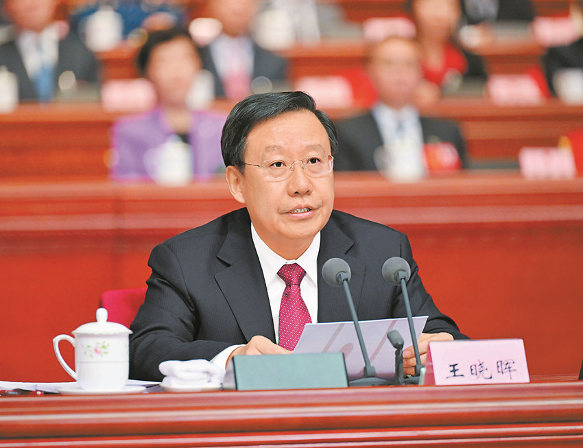 大會主席團(tuán)常務(wù)主席、開幕會執(zhí)行主席王曉暉主持開幕會。