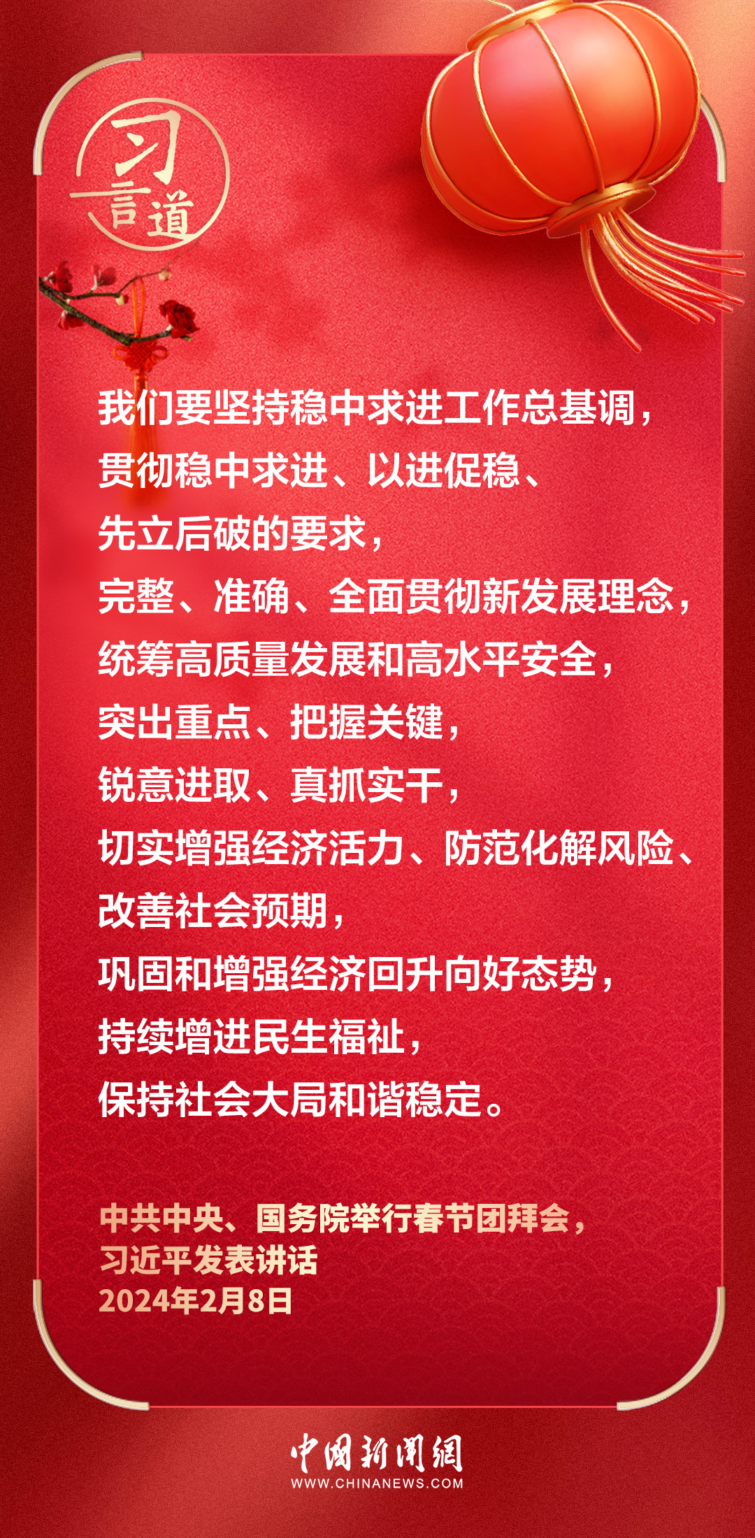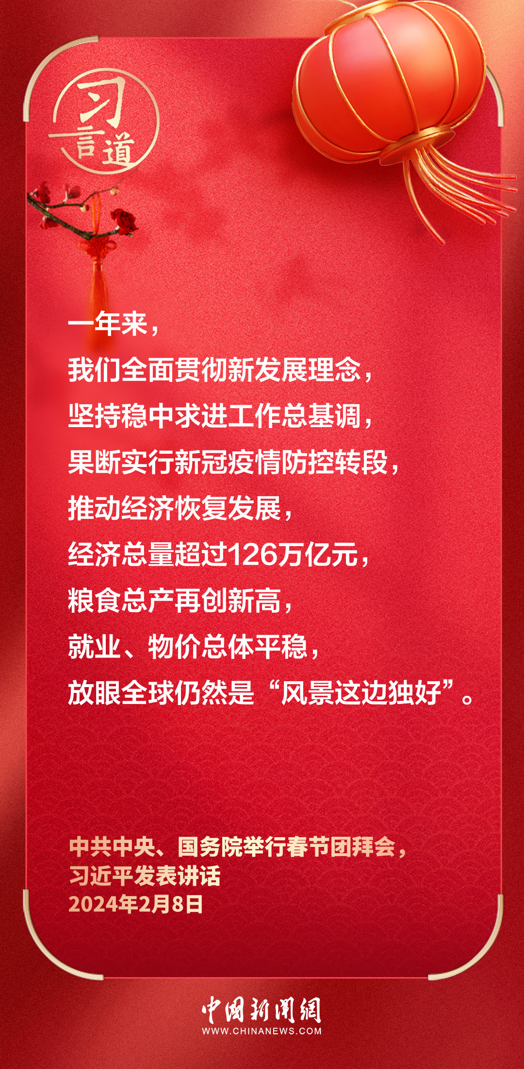 中共中央、國(guó)務(wù)院8日上午在人民大會(huì)堂舉行2024年春節(jié)團(tuán)拜會(huì)。中共中央總書(shū)記、國(guó)家主席、中央軍委主席習(xí)近平發(fā)表講話——