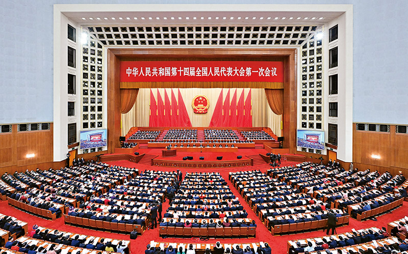 圖為2023年3月5日,第十四屆全國人民代表大會第一次會議在北京人民大會堂開幕。 新華社記者 翟健嵐/攝