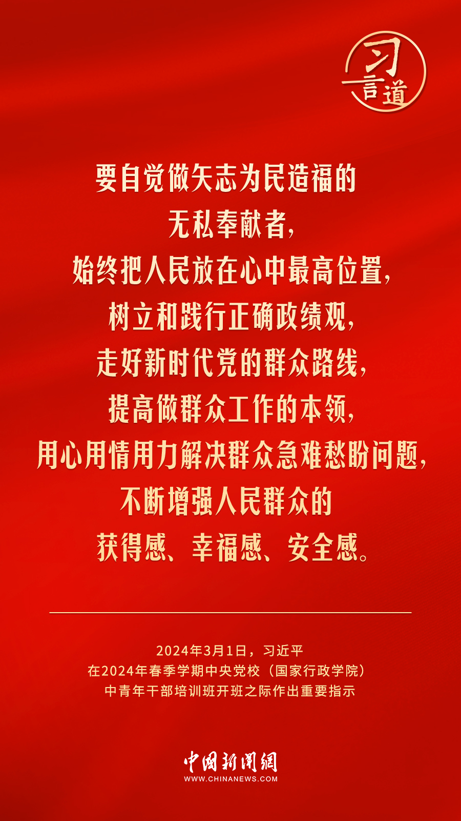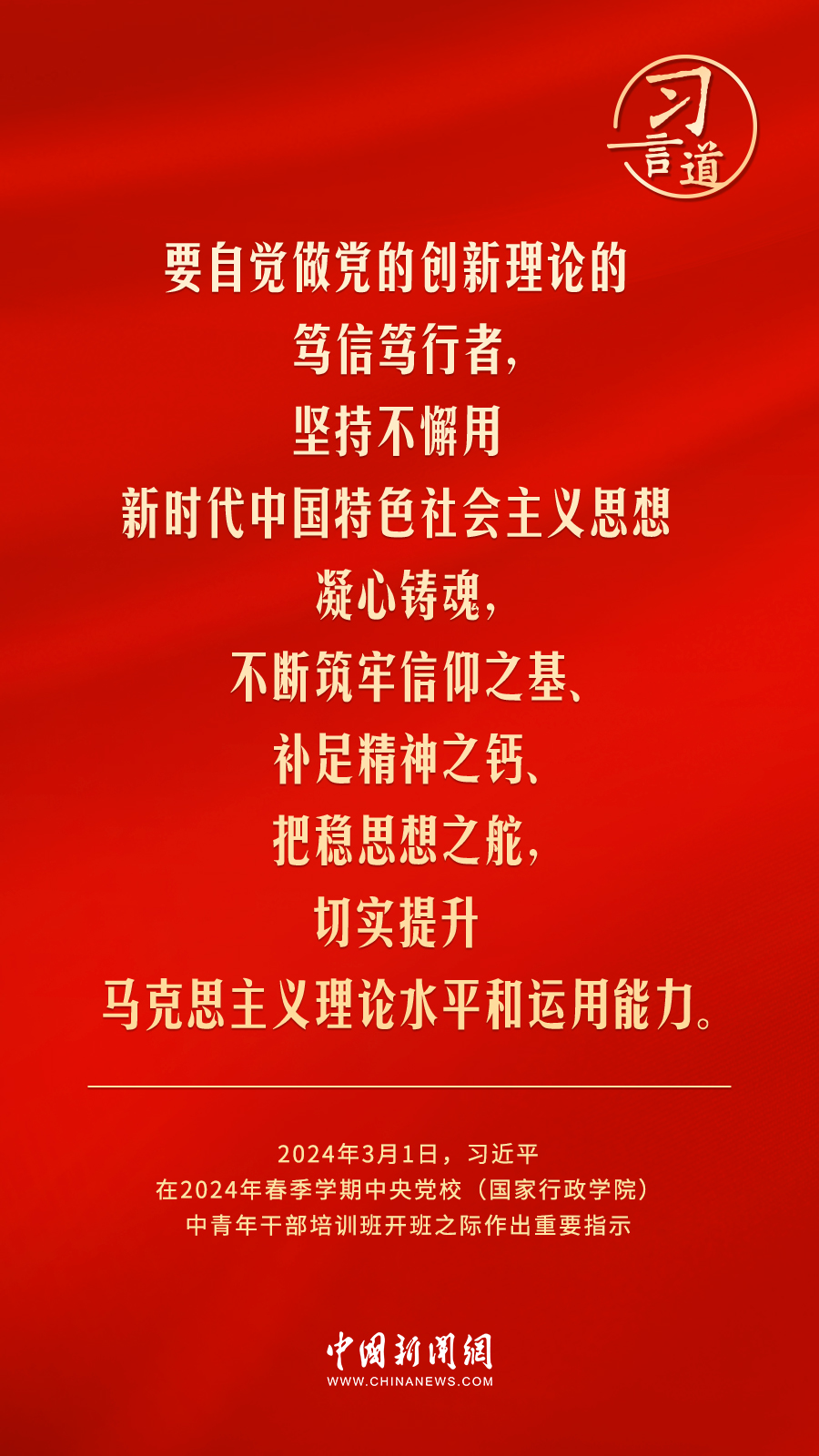 2024年春季學(xué)期中央黨校(國家行政學(xué)院)中青年干部培訓(xùn)班3月1日上午在中央黨校開班。中共中央總書記、國家主席、中央軍委主席習(xí)近平作出重要指示,他強調(diào)——