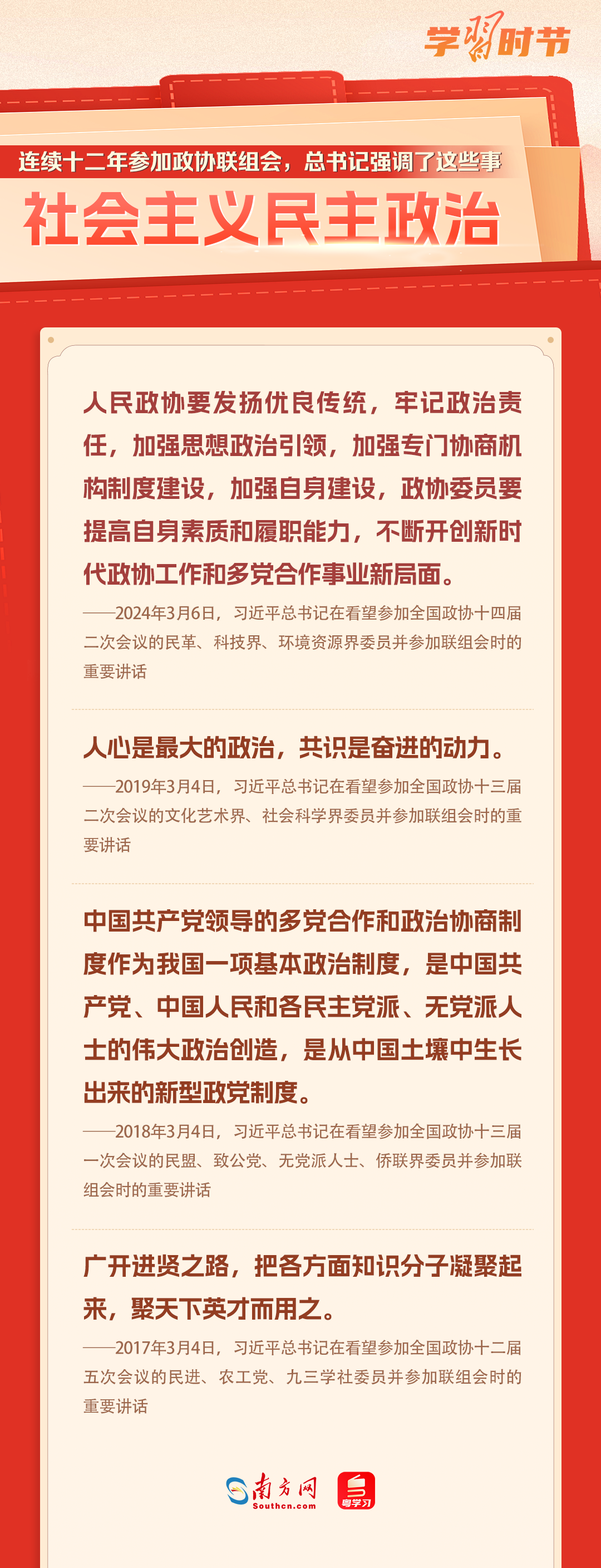 中國共產黨領導的多黨合作和政治協商制度是我國的一項基本政治制度。黨的十八大以來,習近平總書記每年都參加政協聯組會,對社會主義民主政治、民營經濟、自主創(chuàng)新、鄉(xiāng)村振興、社會保障、文化自信、國家統(tǒng)一等作出重要論述,讓我們一起重溫金句!