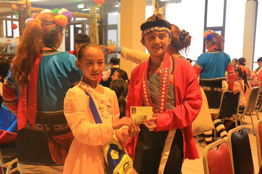 巴塘小朋友在臺上跳著歡快的《激情弦子》,臺下臺灣師生及學(xué)生家長立即打起節(jié)拍,把活動推向高潮。兩岸小朋友在午餐時間互相結(jié)對子,并通過贈送紀念品,互留電話號碼的方式將友情延續(xù)下去。在幾天的交流活動中,巴塘天籟童聲合唱團的孩子們也受到了臺灣當(dāng)?shù)貙W(xué)生家長們的熱烈歡迎。在每場演出的現(xiàn)場,隨處可見拿著相機、攝像機記錄交流活動全過程的當(dāng)?shù)貙W(xué)生家長。在巴塘孩子們的表演間隙,幾位熱心的當(dāng)?shù)貙W(xué)生家長們立即給巴塘孩子送上礦泉水,詢問他們“累不累,熱不熱”。一位家長告訴筆者:“我是學(xué)生家長,當(dāng)我看到巴塘小朋友在如此炎熱的天氣下,穿著華麗厚實的民族服飾演出,我的眼睛里全是淚花,真的特別感動??吹竭@些孩子們天真的笑容,聽著他們嘹亮的歌聲,我和其他家長一樣都被震撼了。我還專門拍了視頻打算回去給家人看,我希望他們在臺灣的這幾天能夠開心快樂,也希望他們以后還能來臺灣做更多交流。”