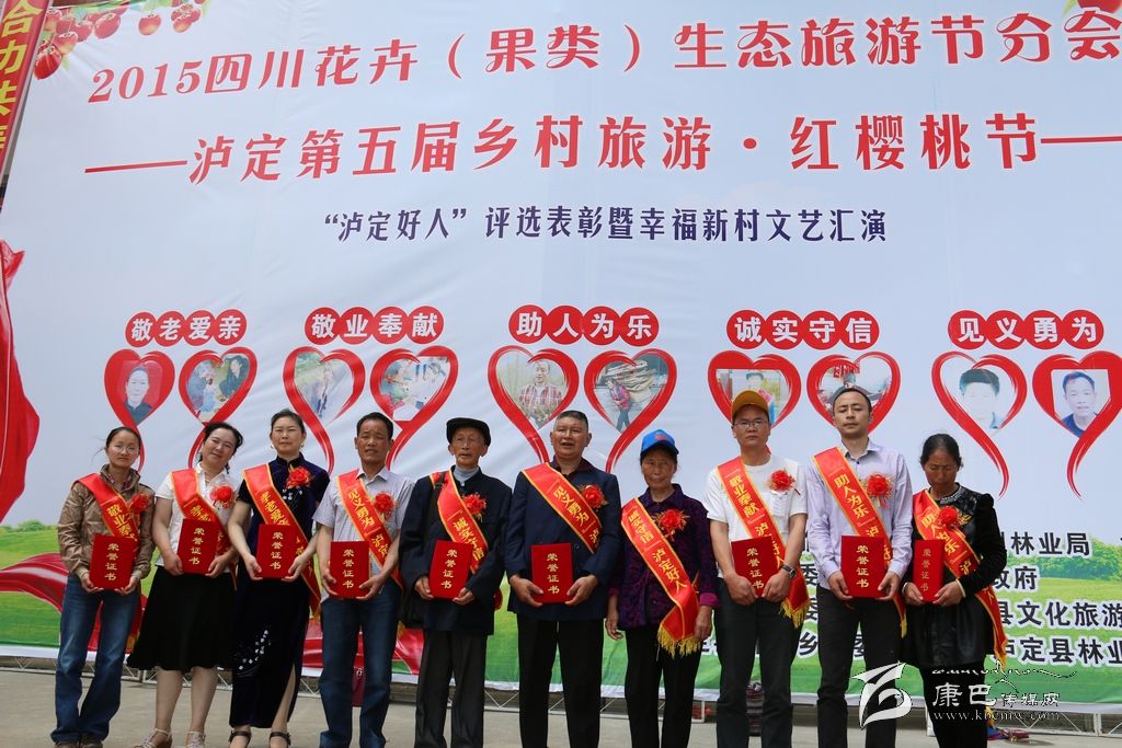 本網(wǎng)訊(記者 宋志勇文/圖)4月18日,由四川省生態(tài)旅游協(xié)會(huì)、州林業(yè)局、州旅游局主辦的2015四川花卉(果類)生態(tài)旅游暨瀘定縣第四屆鄉(xiāng)村旅游·紅櫻桃節(jié)——“瀘定好人”評(píng)選表彰暨幸福新村文藝匯演在瀘定縣杵坭鄉(xiāng)開幕?;顒?dòng)以“魅力櫻桃、果香名城”