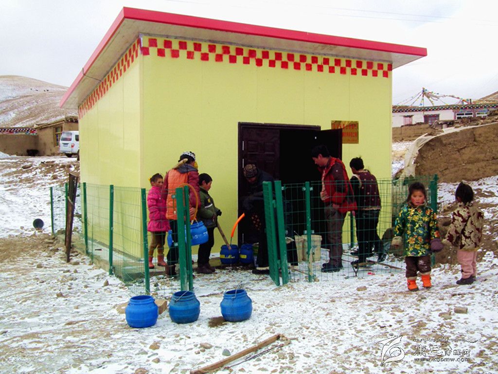 經(jīng)過反復設計檢驗,地質(zhì)工程勘察院最終采用了“泵房、水池雙重保溫、定時供水及時排水”的方案來解決以上問題。在儲水箱和里外出水管上都裹上厚厚的保溫隔熱材料,非凍期24小時按需供水,冰凍期因需要及時排水來確保水箱、水管無殘留水被冰凍而采取早中晚定時供水。通過一個水文年尤其是一個寒冬的考驗,50口示范井成功地為最低零下45度的石渠縣包蟲病區(qū)的居民提供了清潔水源,解決了高原寒冬供水的難題。
