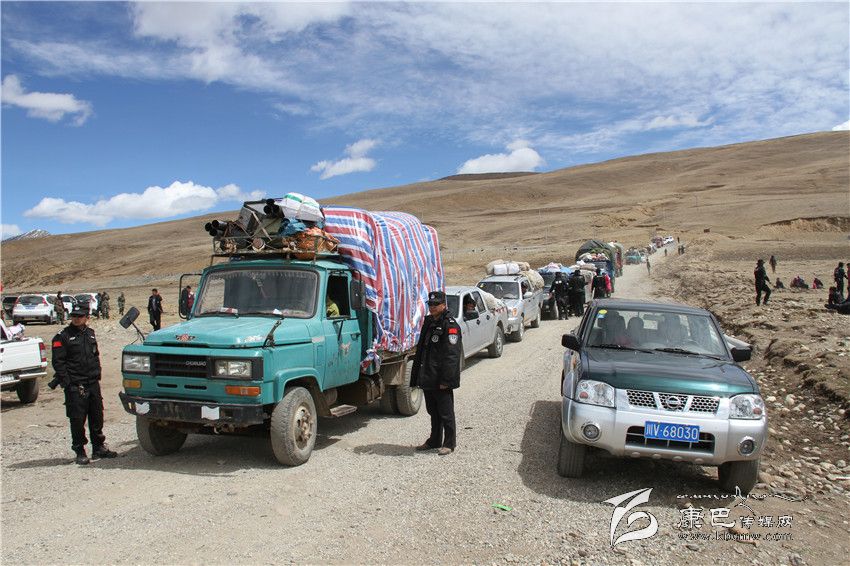 理塘公安干警為蟲(chóng)草采集入山的群眾指揮交通。