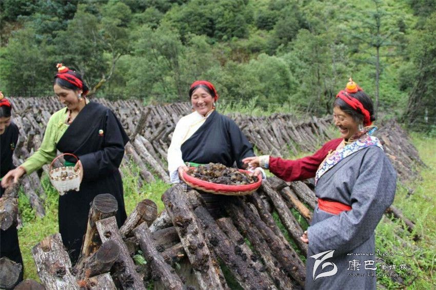 甲斯孔鄉(xiāng)群眾在采摘黑木耳。