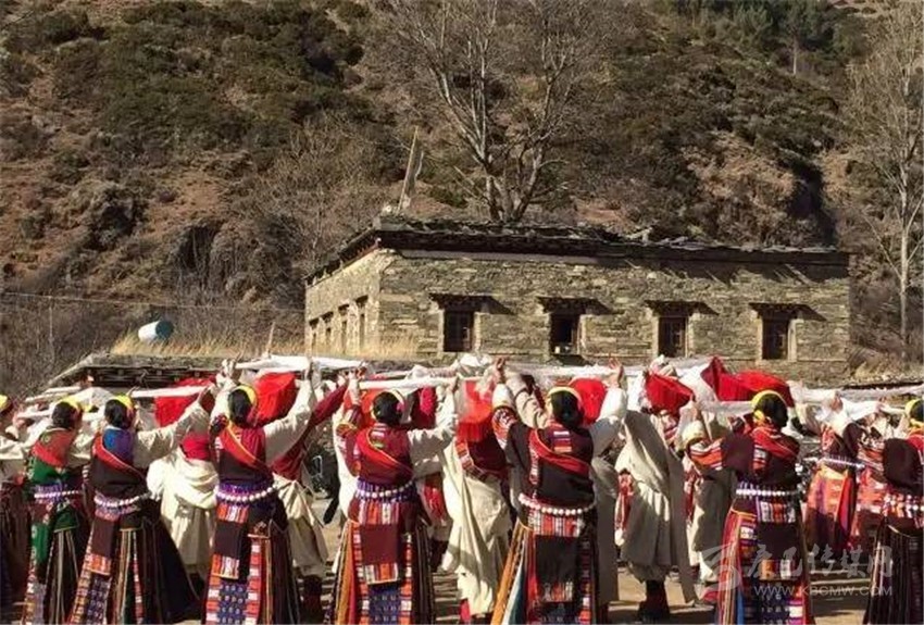 在這個只有300余人的小村,就有近60位青壯年參加了節(jié)目組織和排演,為了讓節(jié)目更加出彩,康定市文化館館長以及舞蹈編排老師,多次深入村莊,與村民同吃同住,從排演隊(duì)形開始,耐心的指導(dǎo)每一個舞步、糾正每一個動作。雖然參與人員的全部是業(yè)余演出人員,但是他們卻有著百分百的敬業(yè)精神,每天農(nóng)忙結(jié)束,大家就聚集在一處學(xué)習(xí)新動作。只要是有演出經(jīng)驗(yàn)的人就會知道,數(shù)十人的群舞最難的地方就是演員之間的相互協(xié)調(diào),而這種難題只有通過反復(fù)排練才能解決。一群人只有將節(jié)目演好這樣一個堅(jiān)定的信念,所以即使在寒冷的冬夜,即使要跳到凌晨一兩點(diǎn)鐘,也沒有人抱怨。