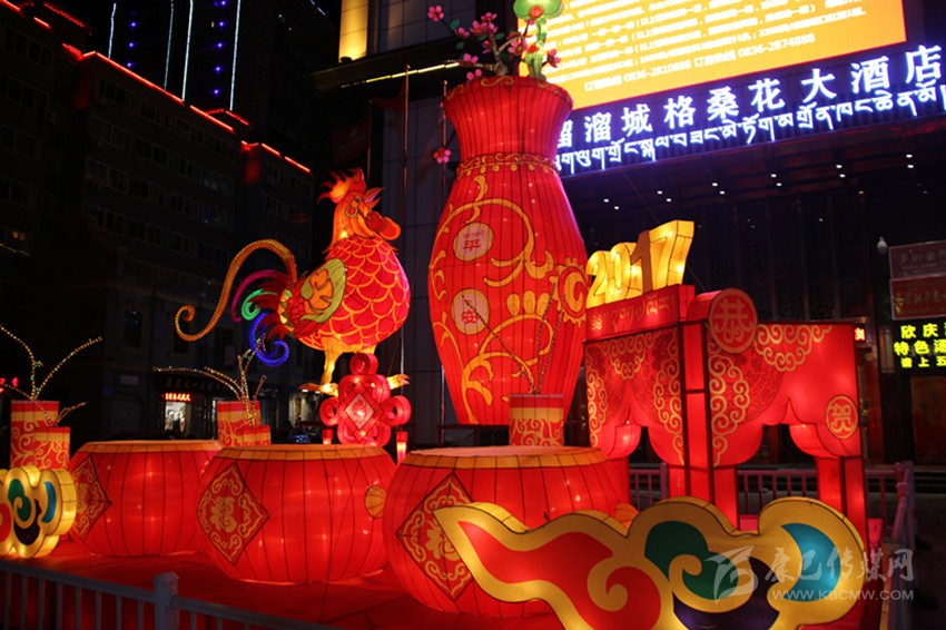 據(jù)該公司負(fù)責(zé)本次花燈設(shè)計(jì)的設(shè)計(jì)師鄭才學(xué)介紹,本次花燈每組主題不同,以全新的設(shè)計(jì)理念、歡樂祥和的氛圍、獨(dú)具特色的造型,向世人展現(xiàn)獨(dú)特的甘孜魅力。向陽橋頭的花燈主題為新春快樂,整個花燈呈火紅色,巨型“春”字搭配藏族繪畫中最常見但寓意深刻的吉祥八寶圖案,以及舞獅子、大紅燈籠、中國結(jié)等融為一體,為來到康定的客人第一時間送上熱情的新春問候;情歌廣場的花燈主題為鼓舞康定,以被譽(yù)為中國民間藝術(shù)瑰寶的大紅鼓作為人民歡慶盛世、贊美和諧的情感載體,充滿雄渾之氣,寓意著我州在時代發(fā)展的浪潮中擊鼓奮進(jìn)、得勝而鳴;情歌大廈門口的花燈主題為金雞送平安,以中國傳統(tǒng)生肖年文化為背景,配合中國結(jié)和爆竹,喜慶而不失莊重,寓意著為全州人民送去平安吉祥;將軍橋頭的花燈主題為童子賀歲,火紅的燈籠搭配喜慶的福娃及爆竹,為全州各族人民送上新年的祝福;17隊(duì)三岔路口的花燈主題為和諧康定,巨大的荷花藝術(shù)造型結(jié)合動感的LED光源,造型高低錯落,寓意和諧、和美,體現(xiàn)在州委、州政府的堅(jiān)強(qiáng)領(lǐng)導(dǎo)下,人民安居樂業(yè),和諧美滿。最霸氣、最吸引人的當(dāng)屬情歌公園主題為吉祥多福的花燈,整個花燈由六個直徑一米半左右的福字燈籠,環(huán)繞一個直徑達(dá)3米左右的福字燈籠組合而成,主燈籠的燈柱高大而厚重,環(huán)繞的六個燈柱上配有吉祥八寶圖案,寓意著全州物產(chǎn)豐富,人民的生活紅紅火火,一年更比一年好。