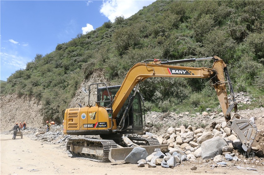 “大家再加把勁哦,早點(diǎn)把公路堡坎砌好,就可以平整路面了?!?/span>7月25日,在甘孜縣城前往扎科鄉(xiāng)的甘扎路上,修砌路基的工人們頭頂烈日,揮汗如雨,一臺(tái)臺(tái)工程機(jī)械或是揮舞著長(zhǎng)臂,或是平整著地面,熱火朝天的建設(shè)場(chǎng)面隨處可見。