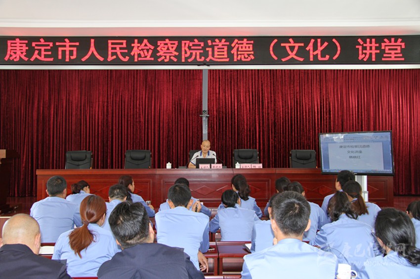 為推進(jìn)檢察文化與公民道德建設(shè),深入學(xué)習(xí)九龍縣人民檢察院原黨組書記、檢察長蘇知斌同志的先進(jìn)事跡,扎實開展政法機(jī)關(guān)“講政治、提能力、鑄忠魂”主題教育活動,8月2日,康定市人民檢察院舉辦了道德(文化)講堂活動。我州學(xué)者韓曉紅圍繞康巴文化和社會責(zé)任等,作了題為“文化與社會安全”的專題講座。 (胡海佳 攝影報道)