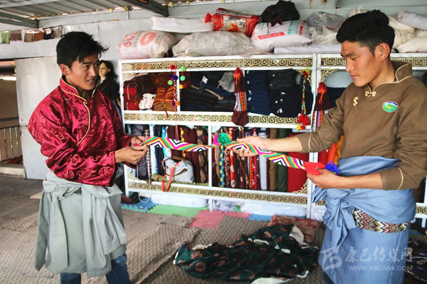 安孜鄉(xiāng)作為白玉縣海拔較高的鄉(xiāng)鎮(zhèn)之一,夏天是十分短暫的,連日來的晴好天氣,也透著絲絲寒氣。牧民阿剛想要量身定做一套過冬的藏裝,8月26日,他來到白玉縣阿察鎮(zhèn),一家民族服飾商貿(mào)公司吸引了他的目光?!拔覀冞@里的服裝面料是本地羊毛和從浙江進(jìn)的上等面料,做工考究,很多工序是純手工制作,服裝樣式你可以根據(jù)你的喜好指定,我們包你滿意?!钡陠T仁真熱情地介紹。聽了仁真的介紹,阿剛用手捻了一下服裝用料的質(zhì)地,看到印有“祥陽措”商標(biāo)的精美包裝袋,商店里擺放的五彩斑斕、高端大氣的藏式男女服裝,他有些動(dòng)心了?!吧a(chǎn)這些服裝的都是我們納塔鄉(xiāng)的牧民,你可以考察我們的服裝用料、生產(chǎn)流程,再作打算。”仁真熱情洋溢地介紹說。