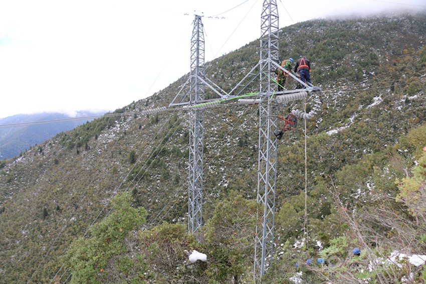 災(zāi)情發(fā)生當(dāng)晚,國網(wǎng)甘孜供電公司連夜組織多支應(yīng)急搶修隊伍,共計人員120余人、工程搶險車22輛趕赴現(xiàn)場,冒著雨雪對故障線路進行巡視,查找故障點。由于夜間大霧加雪,能見度低,搶險車無法開上鄉(xiāng)間小路,搶修人員只能攜帶著工器具徒步巡視,搶修人員深一腳淺一腳地走在又冷又滑的雪地里,打著電筒仔細查看每一基桿塔、每一處開關(guān)。經(jīng)過連續(xù)8小時的奮戰(zhàn),終于找到故障點,于4日下午4時全面恢復(fù)供電。