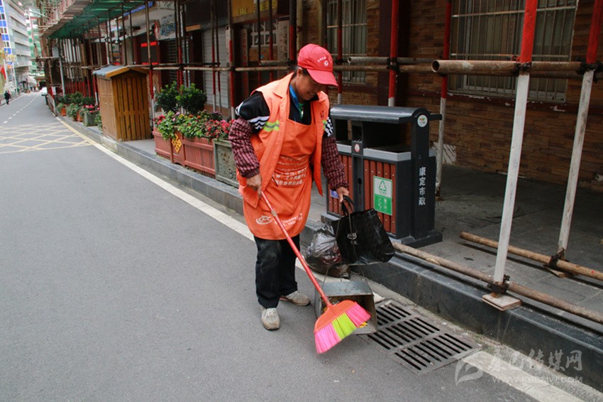 寧愿一人臟,換來千家凈。陳雪梅是康定市一名普通的環(huán)衛(wèi)工作者,3日6點鐘,她到達光明路州委門口段,開始了她一天的工作,這是她的“領(lǐng)地范圍”。由于前一晚上的大雪,路面很濕,還有點滑,這給她的工作帶來了難度。她一手拿著掃帚和簸箕,一手拿著袋子,仔細地掃著每一個角落。她告訴記者,國慶期間,由于車流量和人流量的增加,給環(huán)衛(wèi)工作帶來了較大的壓力,但也正因如此,更要時刻保持街道路面的整潔,給廣大游客留下干凈甘孜的好印象。