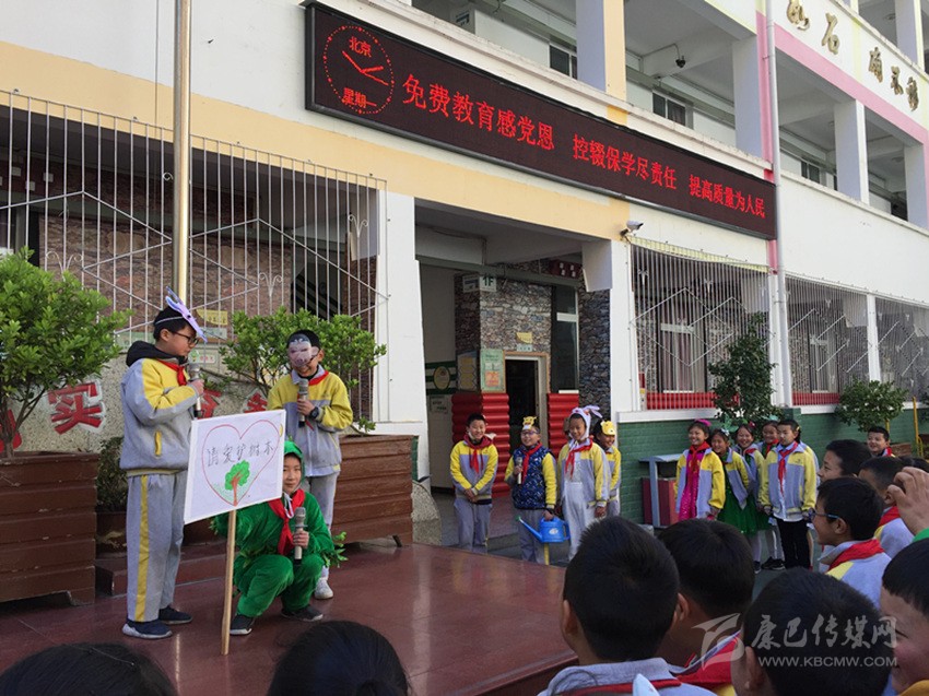 本網(wǎng)訊 為喚起植樹造林、綠化環(huán)境、美化生活的共同意識,養(yǎng)成低碳環(huán)保生活習(xí)慣。近日,丹巴縣城區(qū)小學(xué)校利用周一國旗下講話為契機(jī),用小品的形式,開展植樹造林活動宣傳。