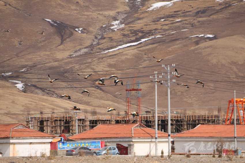 “春江水暖鴨先知”,初春時節(jié)的色達(dá),河面上的冰雪漸漸消融,寂靜了一個冬天的果根塘濕地公園突然充滿了生機活力,上百只赤麻鴨飛到這里成群結(jié)對地嬉水覓食,悠閑自在地漂浮在波光粼粼的水面上,此起彼伏的嘎嘎聲奏響了春之序曲,給過往的游客展示出了一幅人與自然和諧共生的美麗畫卷。