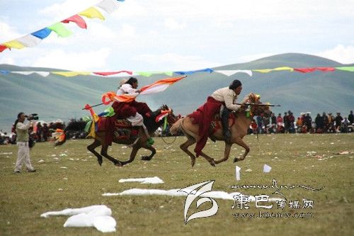 賽馬是廣大藏族群眾十分喜愛的一項體育運動。隨著時代的發(fā)展,賽馬節(jié)的內(nèi)涵不斷拓展,已形成一種內(nèi)容豐富多彩的傳統(tǒng)文化。它不僅是農(nóng)牧民群眾縱情歌舞的聚會,交流農(nóng)畜產(chǎn)品的市場,而且是藏族群眾展示精神風(fēng)貌的舞臺。在所有民間傳承的藏族節(jié)日中,幾乎都少不了賽馬活動,并且此項活動有著悠久的歷史。圖為石渠牧民正在開展賽馬活動。 (李宏 攝影報道)