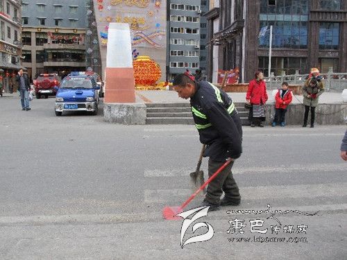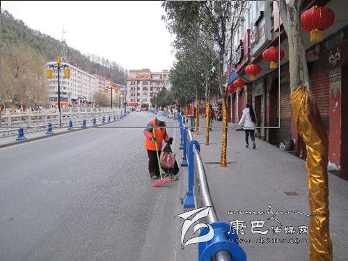 春節(jié)期間,環(huán)衛(wèi)工人們放棄節(jié)假日,用辛勤勞動(dòng)換來(lái)了城市的干凈、整潔。圖為記者在康定街頭捕捉到的鏡頭。