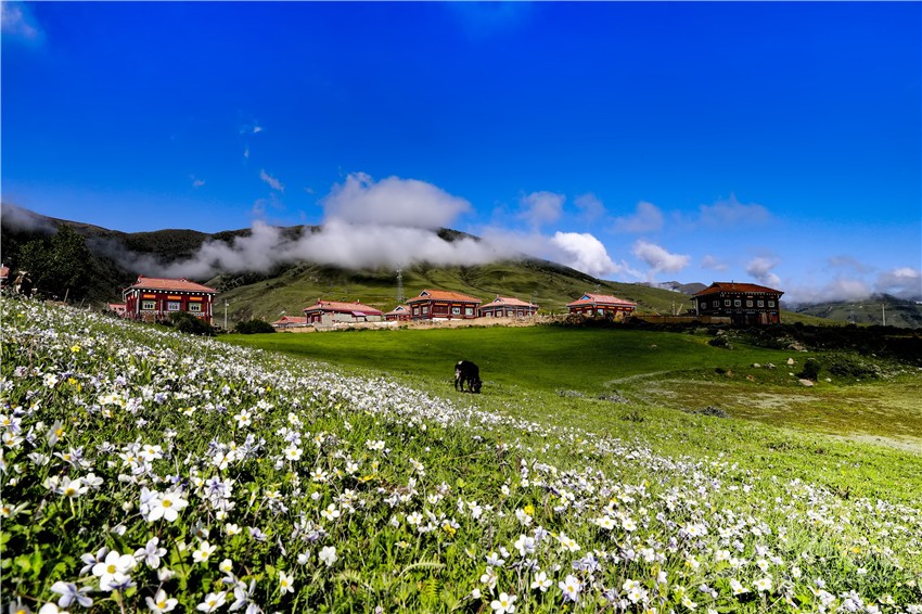 “鄉(xiāng)干部安排我負(fù)責(zé)管理度假村,我當(dāng)即承諾,度假村是我們一手培育起來(lái)的產(chǎn)業(yè),就像我們的孩子,我們要精心呵護(hù)它健康成長(zhǎng)。我們修建了特色住宿,完成生態(tài)廁所、停車(chē)場(chǎng)等配套基礎(chǔ)設(shè)施,拓展騎馬、射箭、土特產(chǎn)銷(xiāo)售等業(yè)務(wù),同時(shí)借助幫扶單位樂(lè)山職業(yè)技術(shù)學(xué)院的力量,有信心把度假村打造成一流的牧旅融合休閑旅游目的地,宗塔草原這片七色花海將會(huì)為群帶來(lái)七彩生活?!贝迕竦莱隽藢?duì)度假村的期望。
