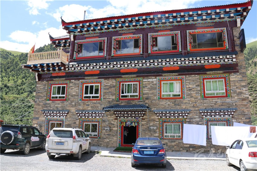 該酒店三樓一底,集餐飲、停車、住宿為一體,設(shè)單標(biāo)間和套房共計(jì)22間38個(gè)床位,雇傭了3名當(dāng)?shù)卮迕駧凸ぃ簝?nèi)甚至配套了超市和茶樓;藏文化元素俯仰皆是,雕梁畫棟,規(guī)模配備,儼已成為全縣鄉(xiāng)鎮(zhèn)一道亮麗風(fēng)景。不論淡旺季,每間房?jī)r(jià)188元至258元不等。夏季正值入住高峰期,8月以來,幾乎天天客滿。