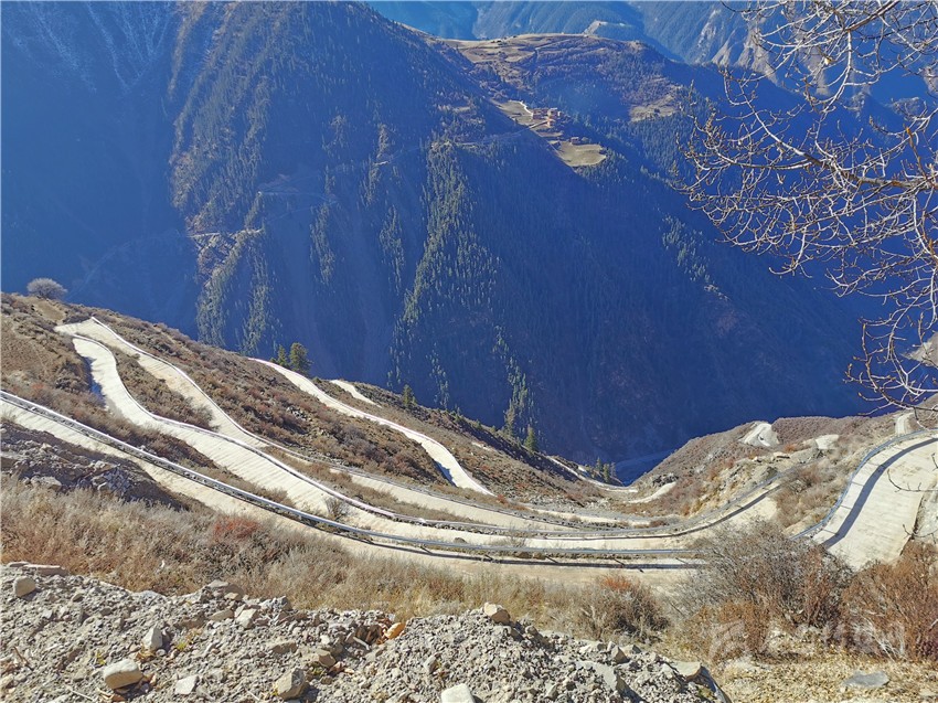 “然布村通村路路面寬4.5米、長7227米,總投資1084萬元?!毙慢埧h交通局工程師唐世楊介紹說,“整條路有數(shù)十個(gè)急彎道,比山路十八彎還復(fù)雜險(xiǎn)峻,可以說是新龍縣最為‘陡、險(xiǎn)、 急’的山路。”