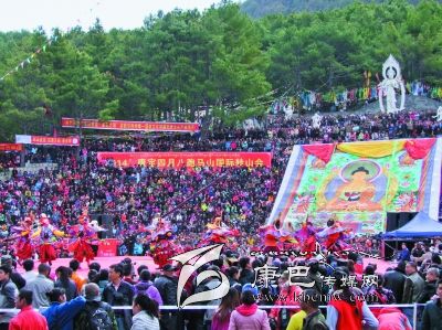 第五屆康定跑馬山“體彩杯”國(guó)際登山賽是一年一度的康定“四月八”跑馬山國(guó)際轉(zhuǎn)山會(huì)活動(dòng)的重要內(nèi)容之一。轉(zhuǎn)山會(huì)的重頭戲是跑馬山跑馬坪上的祈福活動(dòng)。上午9時(shí),記者來(lái)到跑馬坪,陽(yáng)光下的跑馬山,祥云朵朵、桑煙繚繞,越來(lái)越多的人登山來(lái)到這里。9時(shí)30分,在陣陣法號(hào)和僧侶的誦經(jīng)聲中,莊嚴(yán)而又隆重的“四月八”曬佛儀式拉開(kāi)了系列活動(dòng)的序幕。在人們的熱切期待中,釋迦牟尼的巨型唐卡畫(huà)緩緩展現(xiàn)在人們眼前。來(lái)自桂林的游客黃琳說(shuō):“我們?cè)缟希迭c(diǎn)多就起床登上跑馬山,只為觀看曬佛活動(dòng)。這幅釋迦牟尼唐卡像真大啊!法號(hào)聲和僧眾們祈禱頌唱聲,場(chǎng)面壯觀,讓人震撼。”