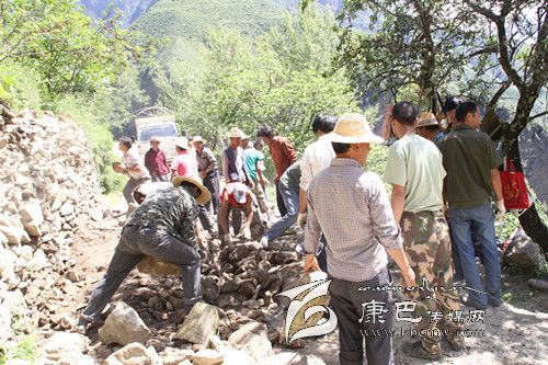 丹巴縣岳扎鄉(xiāng)納頂通村公路全長里程13公里,惠及上、中、下納頂和斯交四村319戶1196人,因前期連續(xù)強(qiáng)降雨,納頂通村公路主干道垮塌嚴(yán)重,交通一度被阻斷,嚴(yán)重影響了村民的出行安全以及農(nóng)副產(chǎn)品外運(yùn)。為盡快搶通公路,多名干部群眾在水電企業(yè)裝載機(jī)的全程協(xié)助下,經(jīng)過近10個小時的連續(xù)奮戰(zhàn),終于完成了通村公路的清障工作。圖為村民們在公路上清障。 (卿莉 攝影報道)