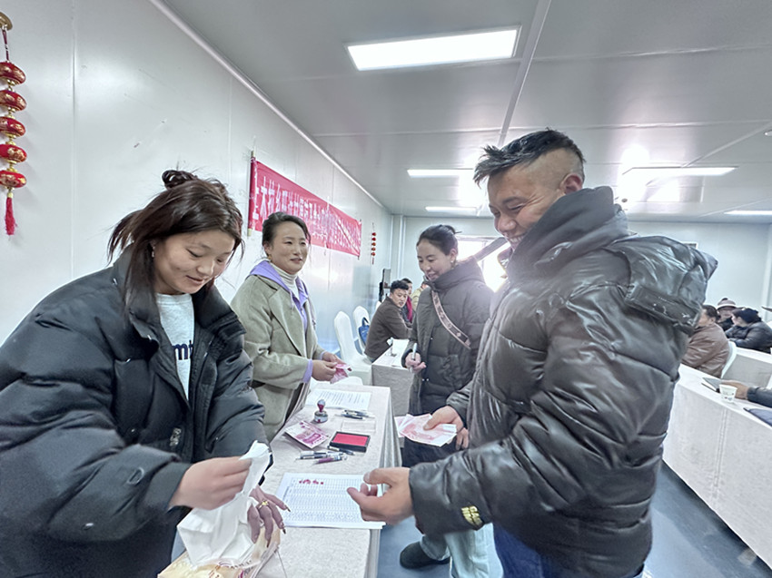 在隨后舉行的分紅儀式上,鄉(xiāng)黨委書(shū)記、公司負(fù)責(zé)人分別就合作方案、相關(guān)政策進(jìn)行了宣講,還對(duì)集體經(jīng)濟(jì)進(jìn)一步發(fā)展等進(jìn)行了分析和總結(jié),簽訂了深化合作協(xié)議。分紅現(xiàn)場(chǎng),村民們有序地對(duì)賬、簽字、領(lǐng)取分紅,臉上洋溢著幸福的笑容。大家表示這一切都要感謝黨和政府的關(guān)心關(guān)懷和好政策,更加堅(jiān)定了聽(tīng)黨話、感黨恩、跟黨走的信心和決心。據(jù)悉,此次分紅主要是旺達(dá)村于2023年7月投入奶茶生產(chǎn)設(shè)備的收入,此次25戶群眾分得12500元現(xiàn)金,價(jià)值7500元的糌粑奶茶,共計(jì)20000元。