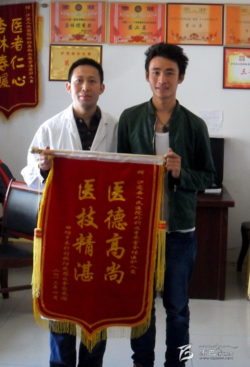 筆者懷著敬佩的心情與大家聊這些事情,值班的護(hù)士說(shuō):“類似這樣的情景在醫(yī)院經(jīng)常發(fā)生。高醫(yī)生為那些關(guān)節(jié)病人置換關(guān)節(jié)手術(shù)才叫精彩,醫(yī)院經(jīng)常收到錦旗,場(chǎng)景讓人感動(dòng)。”原來(lái)幾年前高醫(yī)生通過(guò)在華西醫(yī)科大學(xué)的學(xué)習(xí),回來(lái)后成功開(kāi)展了四肢骨折內(nèi)固定術(shù)120余臺(tái)次,髖關(guān)節(jié)置換術(shù)6例,這可是甘孜州所有醫(yī)院中能夠獨(dú)立成功開(kāi)展全髖關(guān)節(jié)置換術(shù)的唯一醫(yī)院。最特別的是這些病人大多都是老年患者,一旦醫(yī)好,家屬都會(huì)按照老人的意愿送來(lái)錦旗。比如家住瀘定縣城區(qū)93歲陶樹(shù)森老人,2008年10月作股骨頭置換術(shù)康復(fù)得以行走;家住瀘定縣田壩鄉(xiāng)90歲郭安鳳老人,2013年5月行股骨打轉(zhuǎn)子骨折重建術(shù),康復(fù)得以行走;還有家住瀘定縣烹壩鄉(xiāng)70歲的李有蓮老人,2013年5月行全髖置換術(shù),康復(fù)得以行走。如果這些病人在成都醫(yī)治,不僅需要承擔(dān)高昂的醫(yī)療費(fèi)用,護(hù)理費(fèi)用,還要承受路途奔波的痛苦,治愈的快樂(lè)可想而知。
