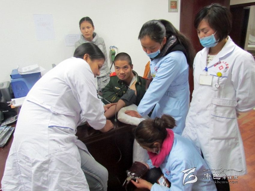 10月20日17時20分,武警甘孜支隊(duì)稻城縣中隊(duì)官兵像往常一樣正在收看新聞聯(lián)播,突然一陣急促的集合哨音劃破了營區(qū)的寧靜。隊(duì)列前,該中隊(duì)指導(dǎo)員秦勇面色凝重的說道:“同志們,剛接到縣人民醫(yī)院求救電話,現(xiàn)有一名游客因胃病引出大出血,面臨生命危險,急需O型血搶救,醫(yī)院血庫O型血告急。”“我去、我去、我去……”,指導(dǎo)員話音剛落,6名符合獻(xiàn)血條件的戰(zhàn)士便爭先恐后的報(bào)起名來。