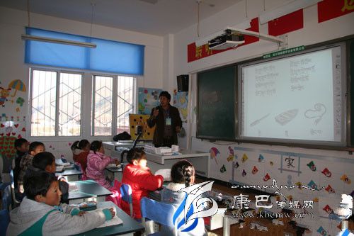 四川省甘孜州爐霍縣仁達鄉(xiāng)中心校教師正在利用多媒體教學。 李益眾 攝