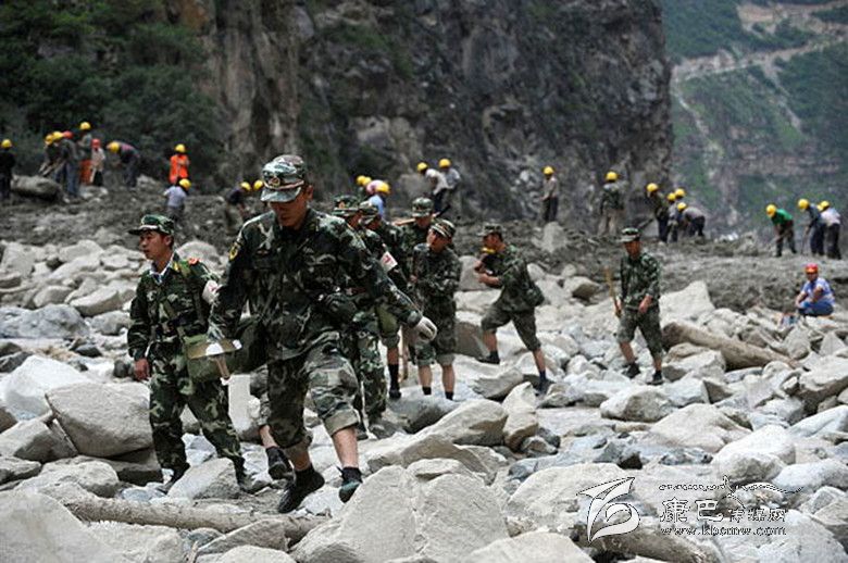 2009年7·23康定舍聯(lián)鄉(xiāng)泥石流災害發(fā)生后,武警官兵在現(xiàn)場救援。 資料圖