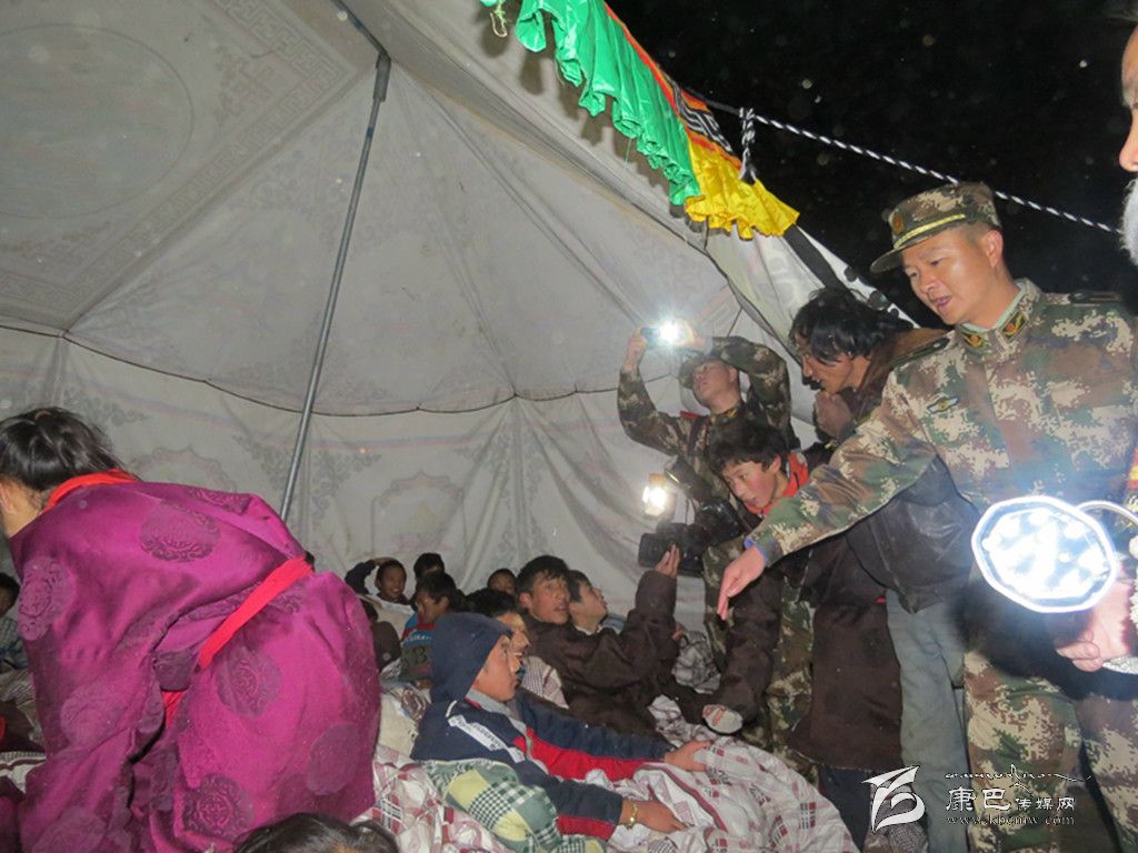 凌晨1時(shí),在江巴村,60名官兵挨家挨戶搜救轉(zhuǎn)移群眾,連夜搭建救災(zāi)帳篷。“同志,我的小女兒拉姆找不著了,可能埋在房子里了……”澤仁阿巴急匆匆地拉著武警戰(zhàn)士的手求援,“你家在哪里?快帶我們?nèi)ィ?rdquo;未等四十歲的澤仁阿巴說完,官兵們奔向不遠(yuǎn)處的一堆倒塌的房屋。考慮到有人埋在下面,官兵們不敢用鎬刨用鍬鏟,在另一面墻上石片不停掉落的情況下,仍然紛紛撲下身子扒拉土石結(jié)構(gòu)的殘?jiān)珨啾?,最終在兩個(gè)木箱中間找到了已哭成淚人的小拉姆,所幸6歲的拉姆安然無恙。