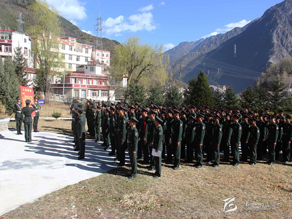 圖為甘孜軍分區(qū)官兵重溫入黨誓詞。門廣州 余鵬程 攝