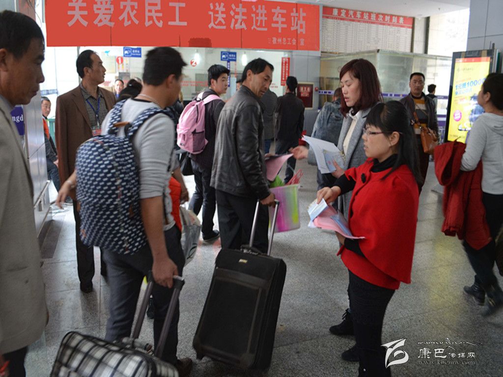 本網(wǎng)訊(宋華玉 記者 秦松 文/圖)“這個(gè)資料太實(shí)用了,讓我們可以了解自己的權(quán)益有哪些、勞動(dòng)合同書是怎樣的。”當(dāng)在康定汽車站內(nèi)的農(nóng)民工拿到由州總工會(huì)發(fā)放的法冶宣傳資料時(shí),他們?nèi)缫曊鋵毎愕卣J(rèn)真閱讀著宣傳資料,或小心翼翼地把資料裝進(jìn)行李中。4月5日至4月13日,州總工會(huì)在康定汽車站開(kāi)展了“關(guān)愛(ài)農(nóng)民工、送法進(jìn)車站”法治宣傳活動(dòng),正式啟動(dòng)了“學(xué)雷鋒、慶五一”服務(wù)職工(農(nóng)民工)系列活動(dòng),拉開(kāi)了州總工會(huì)2015年法制宣傳活動(dòng)的序幕。