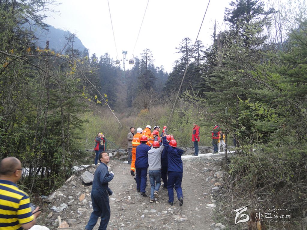 應(yīng)急演練活動(dòng)是模擬索道發(fā)生脫索故障,開展人工救護(hù)應(yīng)急訓(xùn)練。在演練活動(dòng)中,海螺溝客運(yùn)索道出現(xiàn)故障不能運(yùn)轉(zhuǎn),在1C支架和2#支架之間,兩個(gè)車廂共有三名游客滯留空中。海螺溝旅游索道公司立即啟動(dòng)應(yīng)急預(yù)案,救護(hù)總指揮下達(dá)救援指令。后勤組成員對(duì)著車廂喊話,穩(wěn)定游客情緒。救護(hù)小組全體人員,安全、有序、迅速到達(dá)各自崗位,地面工作人員與空中救援人員相互配合,同時(shí)密切注意被困乘客的安全情況,正確操作各項(xiàng)程序,僅用半個(gè)小時(shí)就將被困乘客送到地面,安全完成營救。地面輔助救護(hù)人員立即對(duì)被營救人員進(jìn)行現(xiàn)場檢查和救治,保障了被營救人員的生命安全,應(yīng)急演練活動(dòng)圓滿完成。