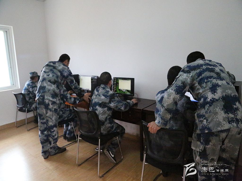 官兵們正在用電腦學(xué)習(xí)專業(yè)技能知識(shí)。