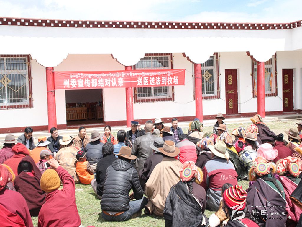 起塢鄉(xiāng)格托二村的牧民群眾都還在蟲草采集點(diǎn),但得知州委宣傳部的親戚們要到村上來送醫(yī)送藥、送法律,牧民群眾們奔走相告,大家相繼趕到村級活動(dòng)室外,熱情地與工作組握手問好,圍坐在草地上聽工作組為大家宣講法律法規(guī)、惠民政策等相關(guān)知識。