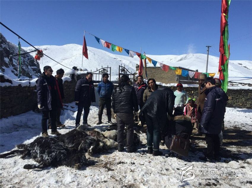 中國(guó)人保在塔公檢查因雪死亡牦牛。