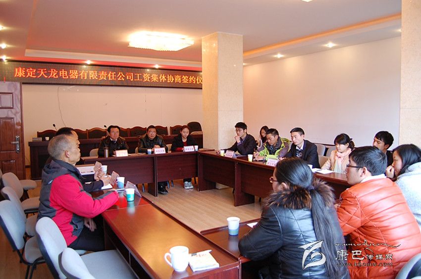 在州總工會(huì)、州人社局、州工商聯(lián)的指導(dǎo)下,由康定市個(gè)私協(xié)會(huì)牽頭,組織天龍電器有限責(zé)任公司工會(huì)、公司法人、職工代表等開展企業(yè)工資集體協(xié)商簽約儀式??刀ㄊ袀€(gè)私協(xié)會(huì)主席何清泉介紹說(shuō):“企業(yè)工資集體協(xié)商辦法,可以有效促進(jìn)勞動(dòng)關(guān)系和諧穩(wěn)定,只有使企業(yè)員工明白‘鍋里有了,碗里才有’的道理,合理提高員工待遇,才能調(diào)動(dòng)企業(yè)員工的工作積極性。”康定市天龍電器有限責(zé)任公司總經(jīng)理萬(wàn)勝才也表示,以前員工的工資標(biāo)準(zhǔn)都由企業(yè)老板定,老板說(shuō)了算,員工只能服從,但員工的積極性沒(méi)有真正被調(diào)動(dòng)起來(lái),企業(yè)留不住人才,企業(yè)的效益受到了嚴(yán)重影響。他說(shuō):“員工才是企業(yè)的原動(dòng)力和生命力,工資集體協(xié)商的好處是可以把員工的利益和企業(yè)的利益捆綁在一起,充分發(fā)揮員工的主觀能動(dòng)性,極大地調(diào)動(dòng)員工的工作積極性。下一步公司將盡可能使員工本土化,加強(qiáng)業(yè)務(wù)培訓(xùn),不斷提高員工福利待遇,關(guān)愛和幫扶困難員工。”