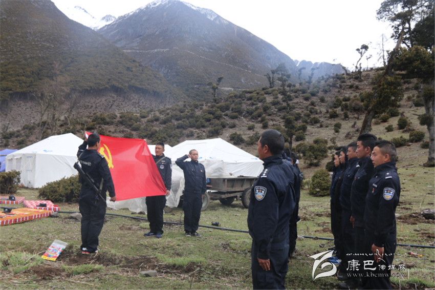 “我志愿加入中國共產黨,擁護黨的綱領,遵守黨的章程,履行黨員義務,執(zhí)行黨的決定,嚴守黨的紀律,保守黨的秘密,對黨忠誠,積極工作,為共產主義奮斗終身。”在建黨95周年之際,九龍縣海拔4800米的熱枯蟲草采集點熱鬧非凡,村民正忙著采挖蟲草,20名駐地執(zhí)勤民警在局長的帶領下,舉行了一場別開生面的重溫入黨誓詞活動,那一聲聲錚錚誓言響徹在雪山上空。