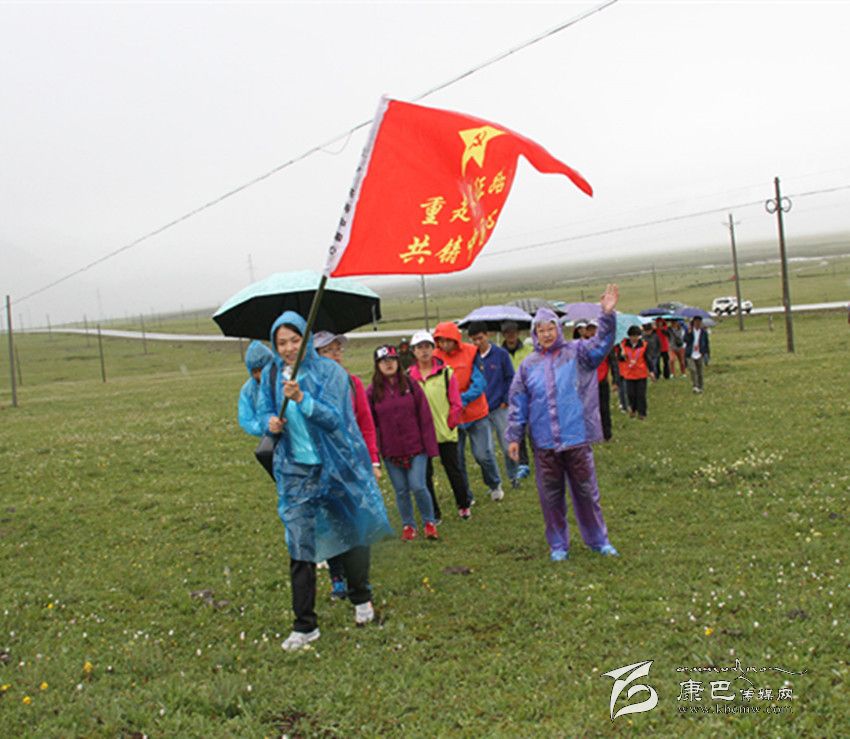 7月13日,“同心·共鑄中國心”大型醫(yī)療公益活動醫(yī)療專家志愿者在結(jié)束4天的義診活動后,來到海拔4200米的理塘縣禾尼鄉(xiāng)毛埡大草原,冒雨體驗紅軍過草地、品味紅軍“行軍餐”。(葉強平 攝影報道)