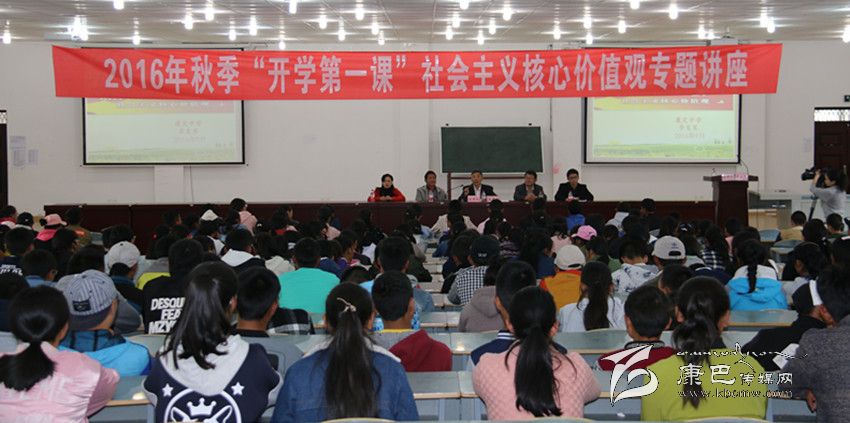 本網(wǎng)訊(記者 宋志勇 文/圖)“聆聽講座是我步入高中的第一堂課,讓我對社會主義核心價值觀有了初步了解。期待在高中階段有愉快的學習氛圍,同學之間相互團結、相互進步,最終實現(xiàn)自己的大學夢。”這是9月1日下午,由州委宣傳部聯(lián)合州教育局在康定中學開展的2016年秋季“開學第一課”社會主義核心價值觀專題講座,剛剛考入該校高中1年級6班,來自丹巴縣15歲的學生羅麗蓉興奮地對記者說。