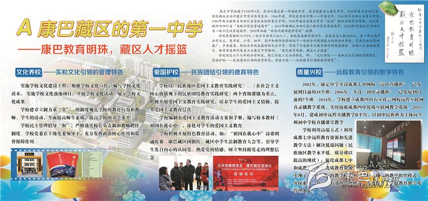 輝煌業(yè)績俱往矣,而今邁步從頭越。康定中學(xué)成功創(chuàng)建四川省一級示范性普通高中,康定中學(xué)歷史翻入新的一頁。學(xué)校將圍繞“建盛德實學(xué)康中校,做豪邁和美康中人”的“康中夢”,把康中打造成全州基礎(chǔ)教育窗口、全省中學(xué)教育名校、全國藏區(qū)教育典范。