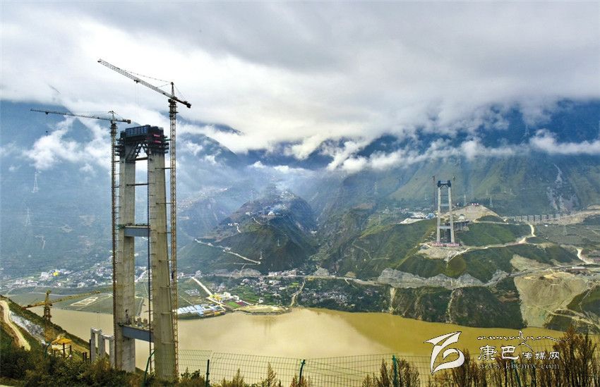 從高處俯瞰,兩座188米高的主墩十分壯觀,在康定一側(cè)的主墩下,汽車長(zhǎng)龍如同螞蟻一樣大小,沿著318國(guó)道向康定進(jìn)發(fā)。