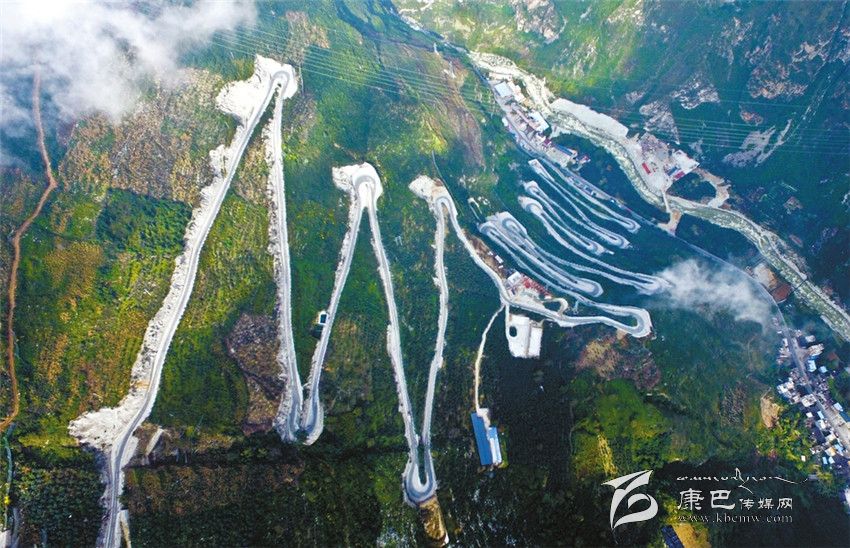 離開大渡河大橋往康定走,另一壯觀場(chǎng)景呈現(xiàn)眼前:為了隧道施工,一條耗資5400萬元、長(zhǎng)8.9千米的施工便道,呈“之”字形從山腳爬升到山頂,足足有二十四道拐,酷似“史迪威公路”的二十四道拐。