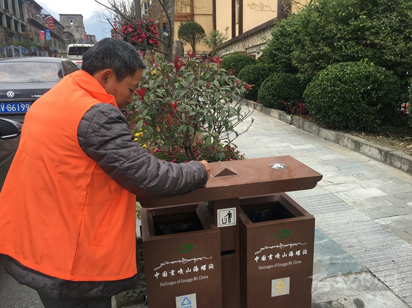 “走,我們到街上逛逛,看看海螺溝的變化。”在海螺溝景區(qū)管理局政治部主任龔自毅的陪同下記者來到磨西鎮(zhèn)街上。邊走邊看,記者看見龔自毅只要發(fā)現(xiàn)街上有煙頭或垃圾時(shí),就會彎腰把這些垃圾撿起來,扔進(jìn)垃圾桶。