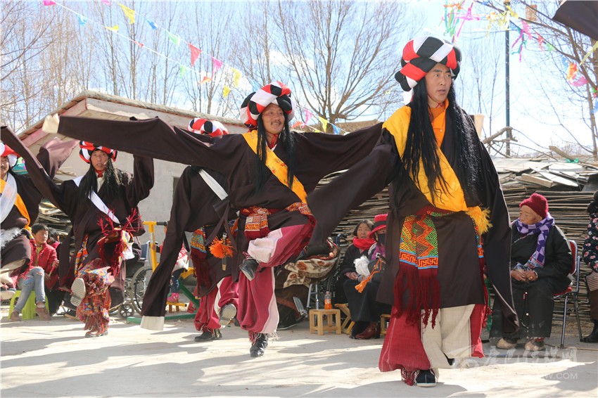 演出現(xiàn)場(chǎng),80歲的澤則瑪高興地說(shuō):“我們一直都是從電視上觀看全國(guó)各地舉辦的新春文藝表演,沒(méi)想到今年春節(jié)我們小小的一個(gè)村子也有了自己的舞臺(tái)?!贝竽瓿跻唬迕駛?cè)缭绯赃^(guò)飯,穿上表演服在村級(jí)文化活動(dòng)室等待10點(diǎn)鐘正式演出,活動(dòng)室外的觀眾們正翹首以盼。伴隨著歡快的歌舞聲響起演員們翩翩起舞,為村子增添了節(jié)日的歡樂(lè)。