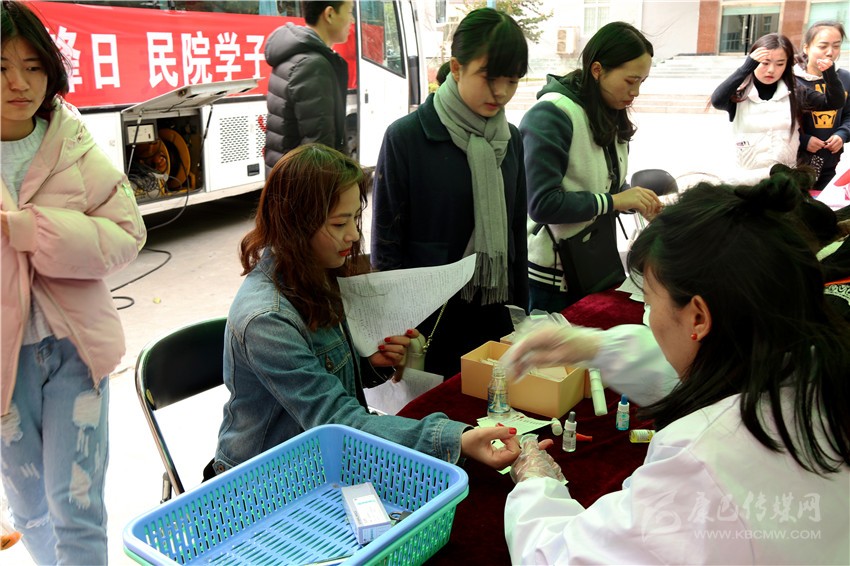 2月中旬,學院尚未開學,大學生志愿服務(wù)總隊便開始了本次活動的策劃和籌備,主動與州中心血站進行銜接,在學院內(nèi)運用網(wǎng)絡(luò)新媒體等方式,向全院師生作無償獻血宣傳動員。3月4日一大早,志愿者們就來到了指定地點做好準備工作。獻血車到達后,志愿者們有序地為獻血的同學提供咨詢、指導填表、引導獻血和派發(fā)獻血證和紀念品等服務(wù)。本該是陽春三月,但春天卻遲遲不肯到來,凍雨仍然淅淅瀝瀝下個不停,前來獻血的同學不顧寒風凜冽,在征詢處和獻血車外排起了長長的隊伍。許多同學距離上一次獻血還沒滿半年時間,也加入了獻血者的隊伍,血站工作人員只能委婉拒絕。面對這些熱心的獻血者,在大學生志愿者服務(wù)總隊記者的采訪中,一位同學笑著回答:“獻血既可以幫助他人,對自己健康也有好處,何樂而不為呢?”她揮著小拳頭:“再說了,今天是雷鋒日,我也要爭當民院小雷鋒!”